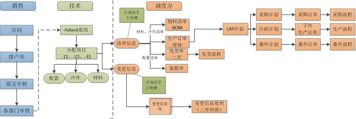 3)銷售到設計:通過客戶自己的hzland系統(tǒng),對客戶訂單進行設計生產(chǎn),拆分成配置清單、冷作清單、材料清單;